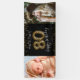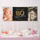 Banner de la fiesta de cumpleaños número 80 con fondo negro de moda, 2 grandes fotos, purpurina y confeti dorado, globos de hélice con huella de leopardo 80 y una plantilla de celebración personalizado que es fácil de personalizar.