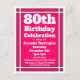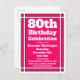 Envíe invitaciones a una celebración de cumpleaños número 80 con esta postal de invitación de cumpleaños simple rosada. Personalizado con su información personal y fiesta.