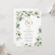 Este exquisito eucalipto de acuarela con adornos de hojas de oro y puntos salpicados de oro invitación a la fiesta de cumpleaños número 80 con tarjeta es perfecto para celebrar a tu esposa, mamá, hermana, tía, amiga, abuela. Su diseño florido suave es moderno pero tradicional. La parte trasera tiene una solicitud muy bien redactada para una tarjeta y un espiral de coordinación de eucalipto. Seleccione Personalizar esta plantilla para convertirla de forma única en la suya. En segundos verás tus impresionantes invitaciones de cumpleaños número 80.