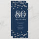 Elegante "Programa de Fiesta de Cumpleaños" con Purpurina Confetti en Plata y Marina con texto personalizado.