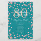 Elegante diseño de "Programa de Fiesta de Cumpleaños" con Purpurina Confetti en oro Rosa y texto Verde azulado con personalizado.