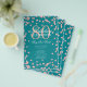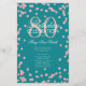 Elegante diseño de "Programa de Fiesta de Cumpleaños" con Purpurina Confetti en oro Rosa y texto Verde azulado con personalizado.