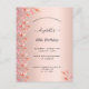 Una moderna y elegante invitación para una fiesta de cumpleaños número 80. Rosa de moda de color oro falso metálico, fondo de Relieve metalizado decorado con estribos botánicos rosados y rosas de color dorado, florales y follaje. El nombre está escrito con un guión de estilo moderno con letras a mano con barras de cambios. Texto negro. Para que los cambios sólo eliminen el nombre del ejemplo, deje los espacios o la emoji delante y después del nombre. Retroceso: fondo metálico falso oro rosa. Sugerencia: Si no desea que se vea como una postal, haga clic en personalizar, vaya a la parte posterior y quite el separador y el sello postal.