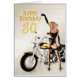 Una encantadora dama al lado de una moto. ¡Una gran carta para el hombre que le gusta montar!