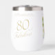 Elegante 80 y fabuloso ornamento 80 cumpleaños Photo Thermal Wine Tumbler. 80 y un texto fabuloso en la escritura dorada de moda y un adorno elegante. Personalízalo con tu nombre, tu edad y foto y haz un tumbler de cumpleaños elegante personalizado.
