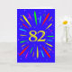 ¡Una explosiva tarjeta de cumpleaños número 82! Qué manera maravillosa de enviar saludos de cumpleaños. El número 82 en amarillo brillante con una explosión de colores brillantes y estrellas.