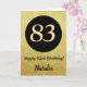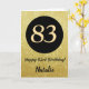 83.ª Tarjeta Purpurina Feliz Cumpleaños Negra y Oro con nombre personalizado. Para una mayor personalización, haga clic en el botón "Personalizar" y utilice nuestra herramienta de diseño para modificar esta plantilla.
