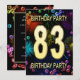 Agregue un nombre al personalizar para esta invitación de grupo única. Invitación a la fiesta de cumpleaños 83 con fuegos artificiales y burbujas. Añade tus detalles al interior para crear una invitación de diversión perfecta. Enciende el cielo con estos gloriosos fuegos artificiales. Una invitación a una fiesta de cumpleaños que tiene estilo y mucha diversión.