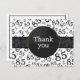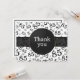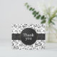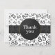 The modern numeric design is a black and white random number pattern with a black milestone number 85 repeated in varied sizes and angles over a white background. There is a circle in the center for your thank-you text.