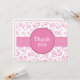 The modern numeric design is a pink and white random number pattern with a pink milestone number 85 repeated in varied sizes and angles over a white background. There is a circle in the center for your thank-you text.