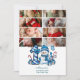 Celebre la primera temporada de vacaciones de su pequeño hijo con este alegre diseño de invierno con un número de manitas azules, adorables muñecos de nieve, y dulces y regalos dispersos. Personalizar con la foto de su bebé y los detalles de su nacimiento para crear un recuerdo que le traiga encanto y magia a sus recuerdos de vacaciones.