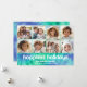 FRENTE - 8 Collages de fotos con un área para el tipo y un acento de tintes en verde azulado y morado. Las 10 fotos funcionan mejor si recortas tus fotos en cuadrado antes de subir. Añade tu saludo y firma familiar a este diseño ecléctico y colorido. BACK - Patrón de tinte de anclaje retro en una mezcla de verde y púrpura. Si necesita mover algo, haga clic en el botón personalizar para realizar cambios.