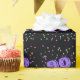 90 es un cumpleaños especial y merece regalos envueltos en un periódico especial. Este papel de envoltura de regalo de cumpleaños 90 presenta 90 en negrita morado sobre fondo de confeti con negro. Este artículo es maravilloso para envolver regalos especiales para un cumpleaños de 90 años. Derechos de autor Kathy Henis