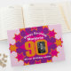 Un libro de invitados de 90 años con estrellas y una foto de tu chica de cumpleaños en el 0 de 90. Personaliza con tu propio nombre, palabras y foto. Ideal para dejar en un hotel para compartir consejos, un gran recuerdo de un 90 cumpleaños. Parte de la colección de juegos de cumpleaños de fotos de la estrella. © Arte gráfico y diseño de Sarah Trett. www.sarahtrett.com para www.mylittleedenweddings.com