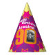 El patrón de estrella brillante agrega tu propia foto y nombre de gorra fiesta. Ideal para una fiesta especial de cumpleaños número 90 para damas. Diseño de cumpleaños color rosa, naranja y amarillo noventa. El color de fondo también se puede cambiar para su elección actual de amarillo. Arte y diseño originales de Sarah Trett. www.sarahtrett.com para www.mylittleeden.com