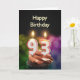 Una torta de cumpleaños con velas. Las velas están compuestas por el número 93, por 93 años. Una tarjeta de cumpleaños para todos.