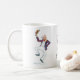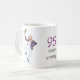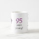 ¡Esta taza blanca del campanero, con el labio y la manija azul marino hace un gran regalo de cumpleaños para los 95 años! La imagen, la parte posterior y el frente está de un baile de un "más viejo hombre", en un gorra de la chaqueta y del navegante, de un ilustracion del watercolour de Judy Adamson. ¡Entre los dos hombres es el texto - 95 años de joven!