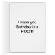 Graciosos búhos de granero rotando sus cabezas. Una tarjeta de cumpleaños humorística para alguien a quien le gustan los búhos.