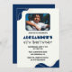 9.ª invitación de cumpleaños Boy Navy Blue Simple Photo