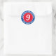 Conmemorar un noveno cumpleaños con una insignia decorada con el nombre del destinatario, así como su edad y fecha de nacimiento. Edad 9.