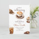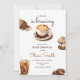 Celebra la próxima llegada de un pequeño con esta adorable invitación de baby shower con tema de café que incluye lattes calientes, café helado, delicias de crema batida y granos de café. La elegante frase “A Baby is Brewing” hace que esta invitación sea perfecta para reuniones acogedoras en casa o para baby showers con estilo de café trendy.