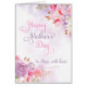 La acuarela floral rosada/púrpura y los lavados en la parte delantera de la tarjeta tienen "Feliz Día de la Madre a la Mamá, con amor" en una hermosa y ágil fuente. Diseñado por Simply Put por Robin usando elementos de The Hungry Jpeg.