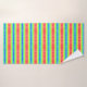 A set of towels displayed on a rod in vibrant rainbow colors with diamond patterns. Below is a folded washcloth showing the same design, evoking a lively mood.