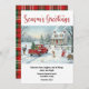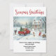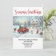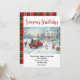 Share the warmth of the season with this “A Very Merry Little Christmas” flat card featuring a charming vintage red pickup truck driving through the snow toward a cozy farmhouse decorated for the holidays. This beautifully detailed winter scene captures everything you love about a classic Christmas -- snow-covered fields, soft falling snowflakes, glowing farmhouse windows, cheerful snowmen, and the nostalgic feel of home for the holidays.