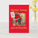 Este Papá Noel vintage está bajando la chimenea con una bolsa llena de juguetes. El diseño incluye un Polo Norte y sellos ESPECIALES de ENTREGA. Esta tarjeta puede ser personalizada y tiene un sobre complementario que también puede ser personalizado.