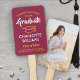 Agrega un toque fresco y personalizado a una fiesta de graduación universitaria o de secundaria con estos abanicos de mano personalizados de color granate y dorado. El diseño incluye una foto del graduado, tipografía moderna y elegante, caligrafía manuscrita y un mensaje personalizable que dice "Felicitaciones a nuestro graduado". El texto en la parte inferior incluye el año de graduación, nombre de la escuela y una línea opcional para el título, honores o cita inspiradora favorita, gracias mamá y papá, u otra información. Todo el texto es fácil de personalizar. Es una idea elegante y personalizada para los recuerdos y decoraciones de la fiesta de graduación y es perfecta para mostrar una foto favorita, como una foto de último año o imagen de la ceremonia de graduación. ¡Felicitaciones al graduado!