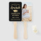 Añada un toque fresco personalizado a una fiesta de graduación de la universidad o de la escuela secundaria con estos fans de la foto personalizado de color negro y oro. El diseño presenta una imagen del graduado, una tipografía moderna y elegante, caligrafía de escritura a mano y un mensaje de personalizable que dice "Felicitaciones a nuestro graduado". El texto inferior incluye el año de clase, el nombre de la escuela y una línea opcional para el grado, los honores o la cita inspiradora favorita, gracias mamá y papá, u otra información. Todo el texto es sencillo de personalizar. Tenga en cuenta que el oro es color impreso, no Relieve metalizado metálico real. Hace una elegante idea personalizada para los favores y decoraciones de la fiesta de graduación y es perfecta para mostrar una foto favorita, como una foto senior o una imagen de la ceremonia de graduación. ¡Felicitaciones al graduado!