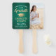 Añada un toque fresco personalizado a una fiesta de graduación de la universidad o de la escuela secundaria con estos fans de la mano verde, dorada y blanca personalizado. El diseño presenta un fondo de acero inoxidable color verde falso, una foto del graduado, una tipografía moderna y elegante, caligrafía de escritura a mano y un mensaje de personalizable que dice "Felicitaciones a nuestro graduado". El texto inferior incluye el año de clase, el nombre de la escuela y una línea opcional para el grado, los honores o la cita inspiradora favorita, gracias mamá y papá, u otra información. Todo el texto es sencillo de personalizar. Tenga en cuenta que el oro es color impreso, no Relieve metalizado metálico. Hace una elegante idea personalizada para los favores y decoraciones de las fiestas de graduación. Perfecto para mostrar una foto favorita, como una imagen superior o una imagen de la ceremonia de inicio. ¡Felicitaciones al graduado!
