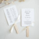 Presentamos nuestra elegante y minimalista plantilla de ventilador de programa de boda, bellamente diseñada con tipografía moderna. Causa una impresión duradera en tus invitados mientras los mantienes frescos y cómodos durante toda tu celebración alegre. El ventilador del programa también incluye el calendario del día de la boda con iconos de boda.