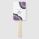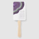 No todos los diseños bodas se crean iguales. Los diseños asimétricos de las piezas en este conjunto impactante de bodas demuestran que eso no es malo. Bandas onduladas de color en contrastantes tonos violeta y verde con un centro de cristal brillante forman un acento geodésico/agato en la mayoría de las piezas del conjunto. El ventilador de mano del boda 'Lista de partidos de boda o programa' que se muestra aquí incluye lo anterior más una plantilla para agregar los detalles pertinentes de su boda. El reverso también le permite añadir un mensaje personal, los nombres de la novia y del novio y la fecha del boda. Buscar ID647 para ver todas las piezas de coordinación de este conjunto.