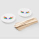 Alas de arco iris onduladas sobre un fondo blanco.