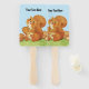 Este ventilador de mano de programa tiene una linda ardilla roja con cola esponjosa y mejillas sonrosadas sentada en la hierba bajo un cielo azul con su reserva de nueces y bellotas. Personalice su texto en la parte delantera y trasera con la plantilla.
