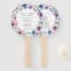 Elegante programa de bodas floridas fan de la mano con tus nombres rodeados de flores color morado, malva y azul acuarela con hojas verdes. Personalice a los fans del programa de bodas florales añadiendo la fecha y la ubicación de su boda, el orden de los eventos y la fiesta de bodas en la parte trasera. Diseñado para coordinar con nuestra colección de bodas de Blooms de Medianoche.