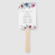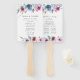 Elegante programa de bodas floridas fan de la mano con sus nombres enmarcados por ramos de flores moradas, malvas y azules de color agua y hojas verdes. Personalice a los fans del programa de bodas florales añadiendo la fecha y la ubicación de su boda, el orden de los eventos y la fiesta de bodas en la parte trasera. Diseñado para coordinar con nuestra colección de bodas de Blooms de Medianoche.
