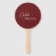 Moderno hincha de mano boda burdeos con un diseño simple y mínimo con el nombre de la novia en un guión elegante y el nombre del novio en un tipo de letra sans serif contemporáneo. La parte de atrás tiene tu foto favorita. Un diseño minimalista que va bien con cualquier estilo boda.