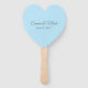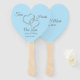 Este abanico de paletas se muestra en una hermosa forma cardíaca con el tono plateado de los corazones de cristal con textos de escritura sofisticados con nombres de ejemplo y fecha, personalizar y cambiar los nombres y fecha a la tuya. Color azul del texto Gris