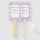 Este ventilador de remo boda se muestra en una impresión de fondo floral de lavanda con nombres de ejemplo y fecha, personalizar y cambia el texto a la suya.