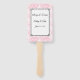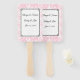 Este ventilador boda se muestra en una impresión de fondo floral rosa claro con nombres de ejemplo y fecha, personalizar y cambia el texto al suyo.