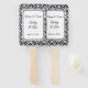 Este ventilador de remo boda se muestra con una elegante huella de damasco en blanco y negro y nombres de ejemplo y fecha. Personalizar este elemento y cambia los nombres y la fecha a lo que necesita.