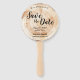 Personalice esta boda única Guardar el ventilador de la ronda de fechas. Cuenta con un disco de corte de grano de madera impreso en estos ventiladores, perfecto para su temática rústica boda. Una fecha útil para guardar. Algo que puedas distribuir en tu fiesta de compromiso.