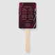 This elegant, modern wedding program fan features a burgundy red agate background trimmed with silver faux glitter. The text appears in silver gray handwriting and copperplate fonts.