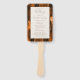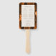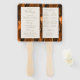 This elegant, modern wedding program fan features a burnt orange agate background trimmed with gold faux glitter. The text appears in elegant gold-colored handwriting and copperplate fonts on an ivory rectangle.