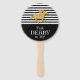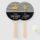 Mantén a tus huéspedes fiestas de burros al fresco con los fans de la mano con "Talk Derby to Me" y un falso caballo de carreras de purpurinas de oro sobre rayas negras y blancas en la parte superior y un sólido área negra en la parte inferior para tu personalización. COINCIDIENDO con los artículos de nuestra tienda.