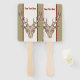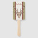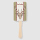 Este ventilador de la mano del programa es de color marrón, con una franja blanca central bordeada por dos rayas rojas profundas y una cabeza de ciervo marrón macho con grandes cuernos. Personalizar el texto en la parte delantera y posterior con las plantillas.