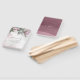 En esta colección de estampados florales se utiliza un tipo de letra de firma manuscrita combinado con un sans serif moderno para establecer un tono cálido e íntimo para su boda. El ventilador de la mano boda que se muestra aquí incluye los detalles de tu ceremonia y un borde de flores exuberantes y follaje en tonos de malva suave a verde salvia contra un fondo de pinturas de color acuático soñadas. Añada sus nombres y monograma sobre un fondo de color de agua simple de malva para completar el reverso. Busque ID771 para ver otras piezas y opciones de color para este conjunto.