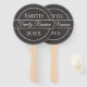 La familia se reúne para recibir un obsequio por un día caluroso con un círculo gris recortado en blanco con una franja horizontal a través del centro. Personalice con los detalles del evento de su elección.